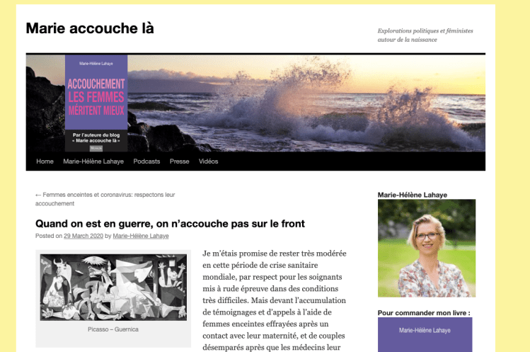 « Certaines futures mères envisagent des recours juridiques contre des hôpitaux qui les empêcheraient d’être accompagnées. Il est même probable que certains couples utilisent des méthodes radicales, telles que celle consistant à comme venir menottés à la maternité pour ne pas être séparés. » tiré de l’article Quand on est en guerre, on n’accouche pas sur le front de Marie-Hélène Lahaye (2020-03-29)
